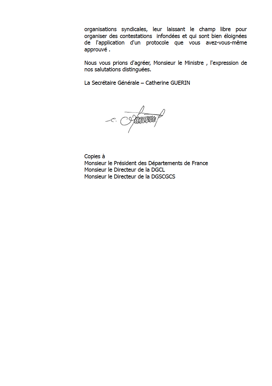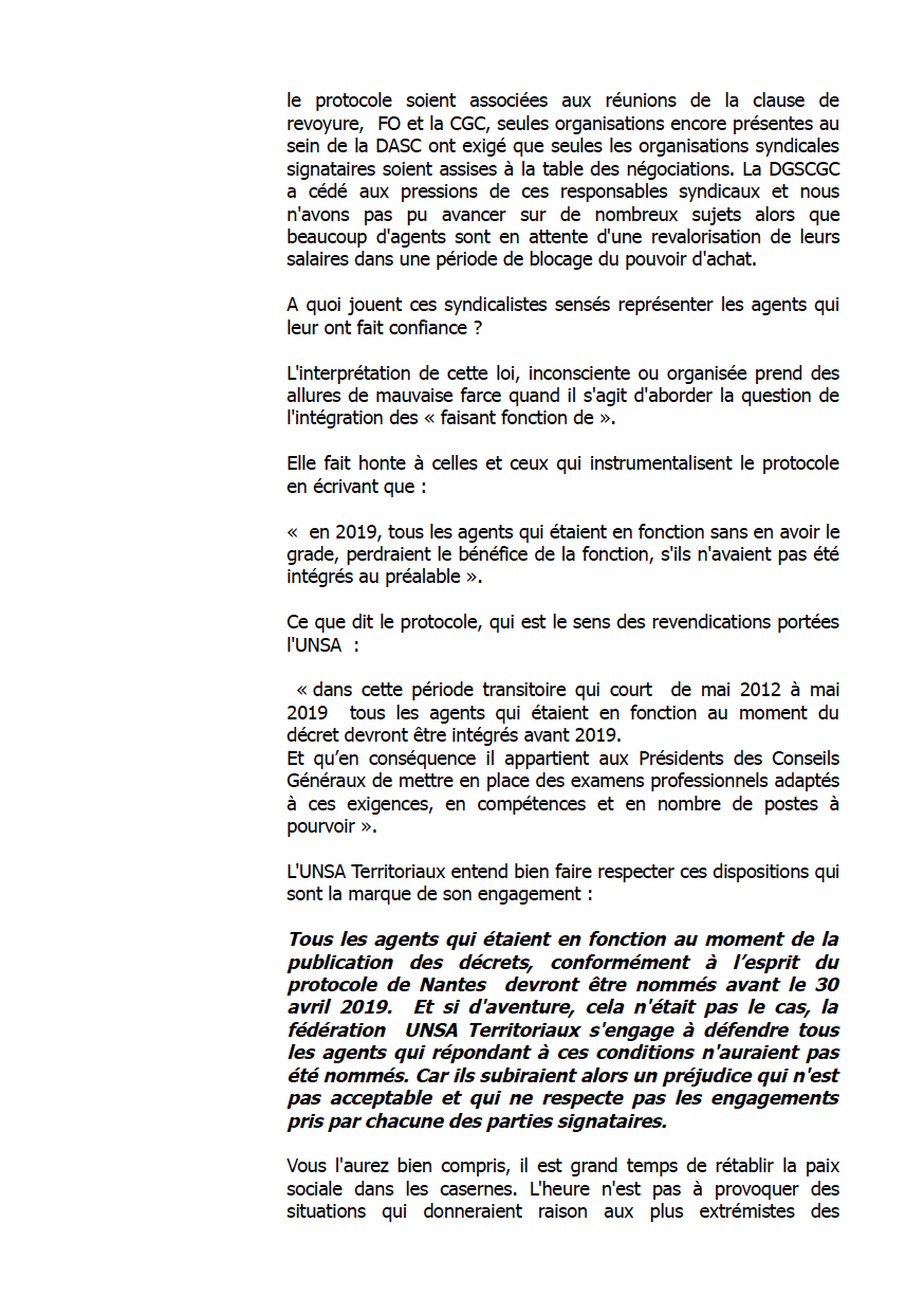 C’est donc un acte fort qui montre notre désaccord avec le gouvernement qui, en introduisant une notion « d’urgence » pour présenter aux organisations syndicales la loi d’organisation territoriale de la République rompt avec le processus de concertation engagé dans le cadre de l’agenda social. Peut on encore aujourd’hui parler de dialogue social ?